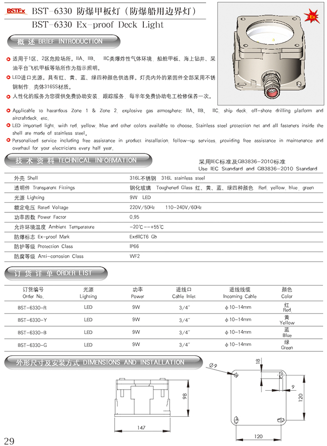 BST-6330防爆甲板灯(防爆船用边界灯)